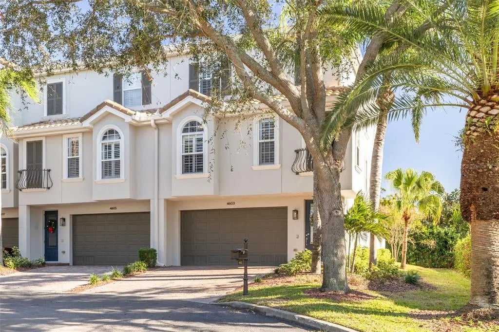 Under contract-accepting backup offers. NEW PRICE! NO WATER INTRUSION! Welcome to this light-filled, elevated corner townhouse in the sought-after Venetian Isle neighborhood, one of St. Petersburg's most desirable waterfront communities. Located at 4603 Overlook Drive NE, this exceptional property offers the perfect blend of style, functionality, and the ultimate Florida lifestyle, just minutes from vibrant Downtown St. Pete (DTSP). This three-story townhome features 4 spacious bedrooms and 4 bathrooms, with thoughtful details throughout, including plantation shutters and ceiling fans in every room. The open-concept living area is filled with natural light, boasting luxury vinyl flooring and a stone-countered kitchen that’s as beautiful as it is functional. Step onto the balcony with serene water views—the perfect spot to relax and unwind. The first-floor guest suite includes an enormous walk-in closet, a private bathroom, and access to a fenced-in private brick patio, offering endless possibilities as an in-law suite, teenager’s retreat, or income-producing ADU. The primary suite on the top floor is a luxurious retreat, with a washer and dryer conveniently located nearby. The primary bath features a soaking tub, a large separate shower, and ample space for relaxation. Three of the bedrooms include enormous walk-in closets, providing exceptional storage throughout the home. The oversized two-car garage offers even more storage with built-in units, and the elevator makes accessing all three floors effortless. Designed with peace of mind, this elevated property has not been impacted by hurricanes. Enjoy low-maintenance living, lush landscaping, and the luxury of being part of a waterfront neighborhood close to the best dining, shopping, and cultural experiences unique to St. Pete. Don’t miss this incredible opportunity to make this Venetian Isle gem your home! Schedule your private showing today!